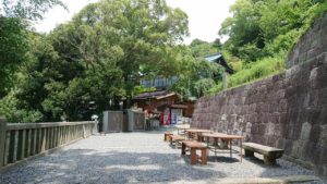 一ノ門を過ぎてもまだまだ石段は続きます。少し歩いていくと今度は左手に売店が見えてきました。売店が見えたということは社務所までもう少しです。