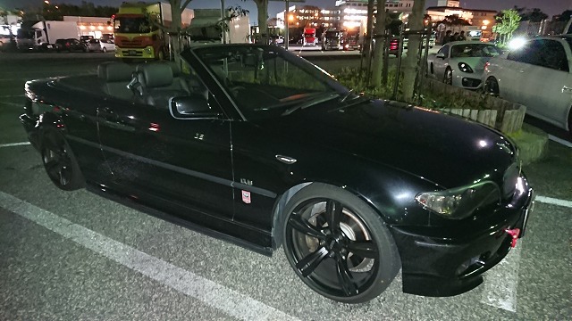 色々と停まっている車を見ていく中で気になったのが『BMWカブリオレ』です。最近はだいぶ寒くなってきたわけですが、夜なのにルーフが全開になっています。この寒空の下、ルーフが全開になっていることに男気を感じずにはいられません。(笑)