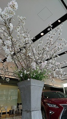 レクサス宝塚さんでは、季節毎に鮮やかな花を飾られているのですが、4月ということもあり、綺麗な桜が店内を明るく彩っていました。