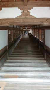 七堂伽藍へ向かう前に、まずは順路に従って笠松閣内を見学します。永平寺内は車椅子の方でも見学が自由に出来るように吉祥閣内にエレベーターが設置されています。このエレベーターを使うことで、車椅子の方でも施設内の見学が出来るようになっています。