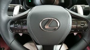 その他に、気になったのはハンドル周りについている操作ボタンの多さでしょうか。乗っているISと比べて妙に多いなと思い、質問してみるとレーダークルーズコントロール等の設定をするレバーがLCには無いため、操作ボタンでレーダークルーズコントロールを設定しなければいけないのでボタン類が増えているということでした。