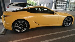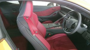 今回、私が乗せて頂いたのは【LC500 S package】、ボディカラーはネープルスイエローコントラストレイヤリング、インテリアカラーはダークローズという組合せの固体でした。このボディーカラーはオプションとなっており、価格は162,000円です。こんな感じのイエローは結構好きな色だったりします。(笑)