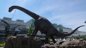 この恐竜のモニュメントですが、ただ展示してあるだけではなく動くんですよ!しかも鳴き声も出ます!動いている様子を見ているとこの恐竜たちが生きていたときはこういった光景があちこちで繰り広げられていたんだろうなとワクワクしてしまいますね。
